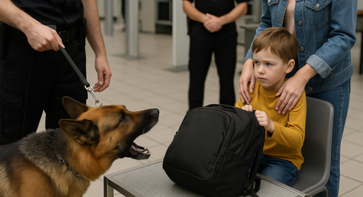 The backpack belonged to a young boy, no older than seven, traveling with his mother. Confused and alarmed, the mother tried to calm her son as security personnel quickly moved in. The entire checkpoint froze. All eyes turned toward the child, the dog, and the mysterious bag.